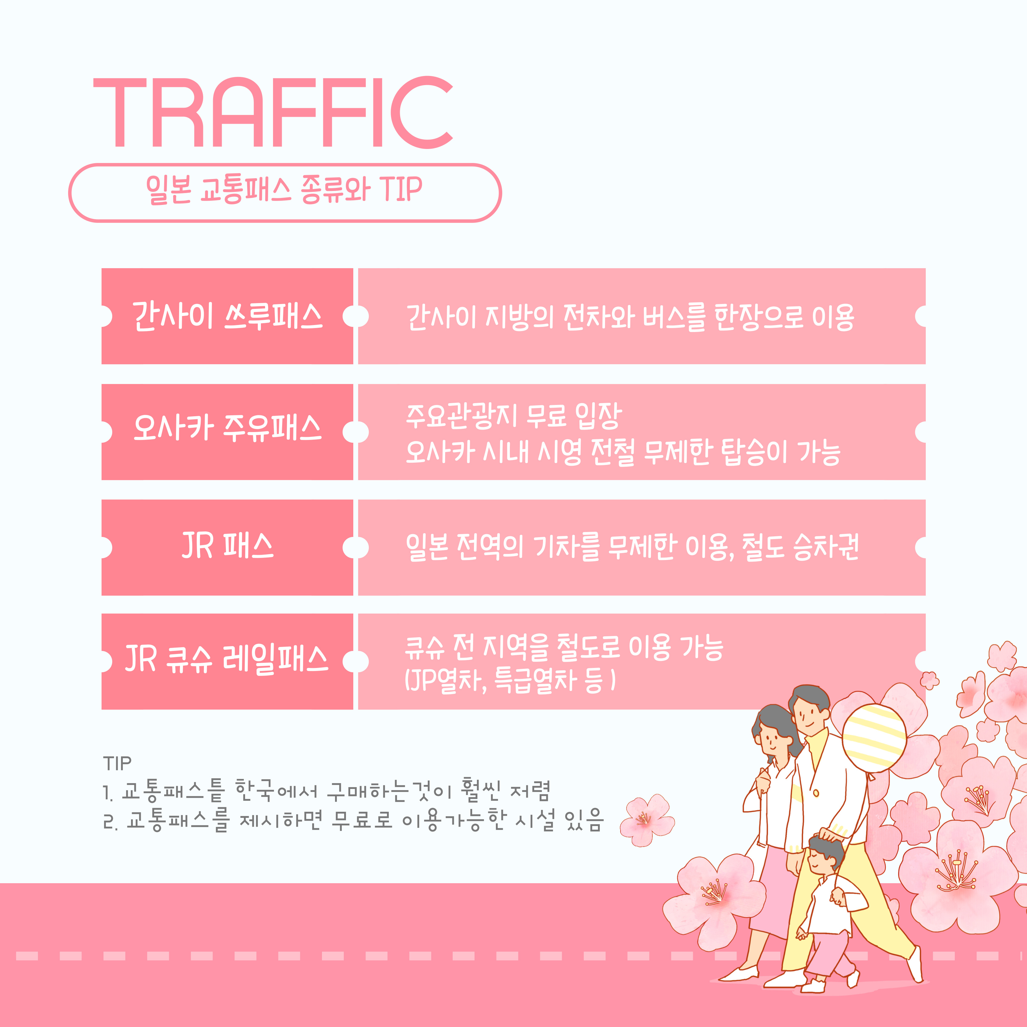 - ✔️ 교통카드: Suica, Pasmo (한국의 티머니 같은 역할)